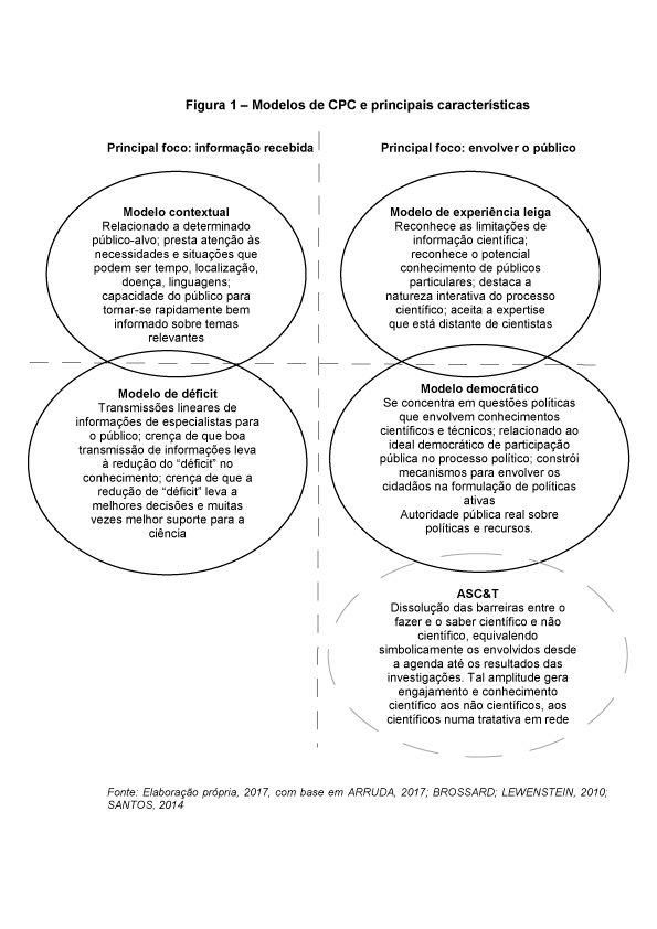 O artigo tem o objetivo de analisar e compreender os quatro modelos existentes da comunicação pública, além de promover uma reflexão no que diz respeito à aproximação e fusão da Comunicação Pública da Ciência (CPC) com o Campo Ciência, Tecnologia e Sociedade (CTS). Também propõe questionamentos que buscam refletir qual dos possíveis modelos de comunicação pública já existentes se alinham aos pressupostos do Campo CTS por abarcarem uma noção mais democrática e acessível e que viabilizem a real apropriação social da ciência. Para fomentar estas reflexões, o método utilizado foi o de levantamento bibliográfico, com revisão de literaturas nacional e internacional na área. A publicação aponta que o modelo de déficit é atualmente predominante na divulgação científica do Brasil e que, portanto, a participação pública ainda é incipiente e os cidadão ainda não assumiram um papel protagonista no que diz respeito à apropriação social da ciência. Também resulta num quadro elucidativo sobre as diferenças e particularidades de dois principais modelos, sugerindo, por fim, que o modelo democrático de comunicação pública e um possível quinto modelo, de apropriação social da ciência, são os que mais se aproximam dos Estudos CTS e vão de encontro com uma comunicação pública da ciência mais democrática e participativa.