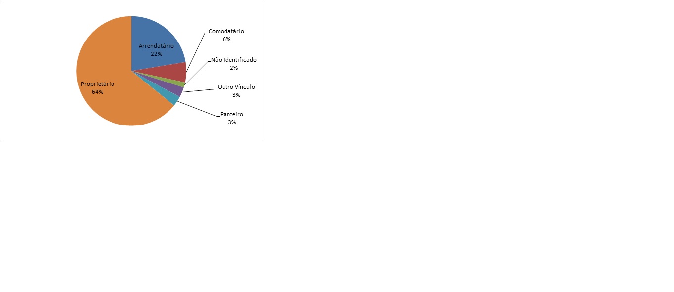 - Gráfico 02: Distribuição dos associados quanto ao vínculo feito com as terras em que produz junto à ASPROSAM (%).