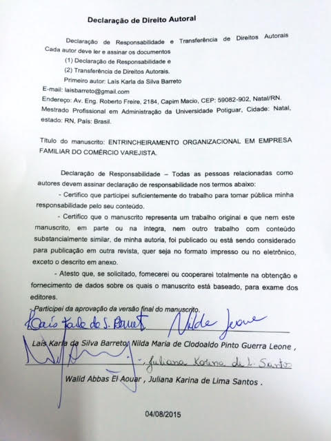 DECLARAÇÃO DE TRANSFERÊNCIA DE DIREITOS AUTORAIS