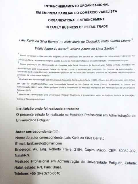 ENTRINCHEIRAMENTO ORGANIZACIONAL EM EMPRESA FAMILIAR DO COMÉRCIO VAREJISTA