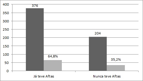 - GRÁFICO 1 - Frequência absoluta de acometimento por afta. Uso de plantas medicinais no tratamento da estomatite aftosa recorrente na cidade de Petrolina – Pernambuco.