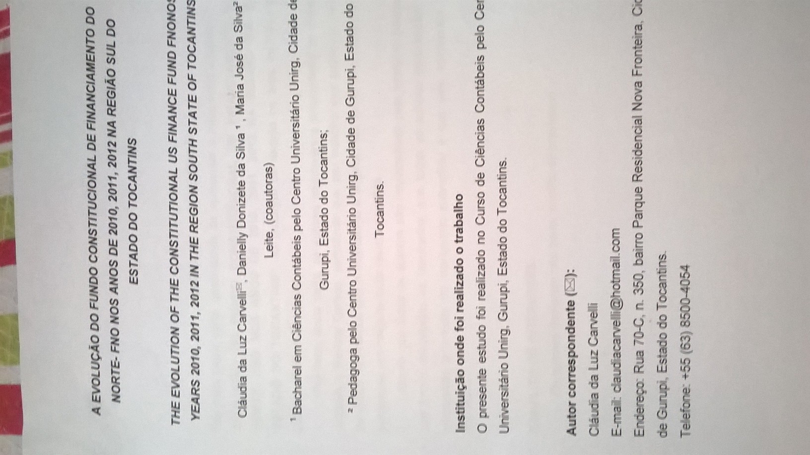 A EVOLUÇÃO DO FUNDO CONSTITUCIONAL DE FINANCIAMENTO DO NORTE- FNO NOS ANOS DE 2010, 2011, 2012 NA REGIÃO SUL DO ESTADO DO TOCANTINS