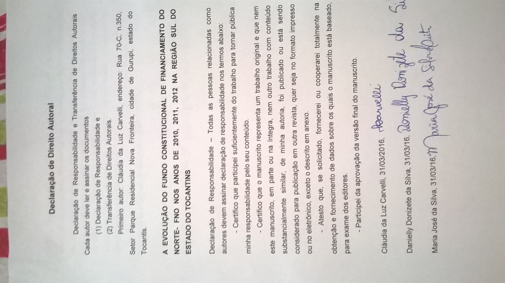 DECLARAÇÃO DE TRANSFERÊNCIA DE DIREITOS AUTORAIS