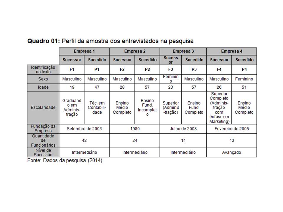 Herdar uma empresa familiar é por muitas vezes considerado como uma dádiva, no entanto, esta narrativa pode possuir seus revezes, já que a herança se apresenta, em alguns casos, como uma “maldição”. O objetivo desta pesquisa foi analisar as expectativas, paradoxos e problemáticas de pais e filhos no processo sucessório nas empresas familiares de pequeno porte do ramo calçadista de Nova Serrana. Para tal, utilizou-se de um percurso metodológico na abordagem exploratória qualitativa, fazendo uso de entrevistas semiestruturadas centradas no problema. Foram entrevistados 04 pais-sucedidos e 04 filhos-sucessores e a análise de dados foi feita a partir da análise de conteúdo com o auxílio do software Atlas T.I. 7.0. Os resultados apontaram que para os sucessores (filhos), os dilemas estão relacionados ao medo e à insegurança sobre sua própria capacidade de suceder o pai e dar continuidade às atividades da empresa com sucesso. Já para os sucedidos (pais) existe o receio frente à pouca experiência dos filhos, além de uma dificuldade de abrir mão de suas atividades na empresa e se desvincular desta. Notou-se a partir destes, que o fardo psicológico e a ênfase na manutenção do sucesso são fatores que influenciam no processo de sucessão familiar, podendo coloca-lo em xeque, principalmente quando o pai, receoso quanto à inexperiência do filho, o aprisiona em uma situação de viver sempre com a possibilidade do erro.