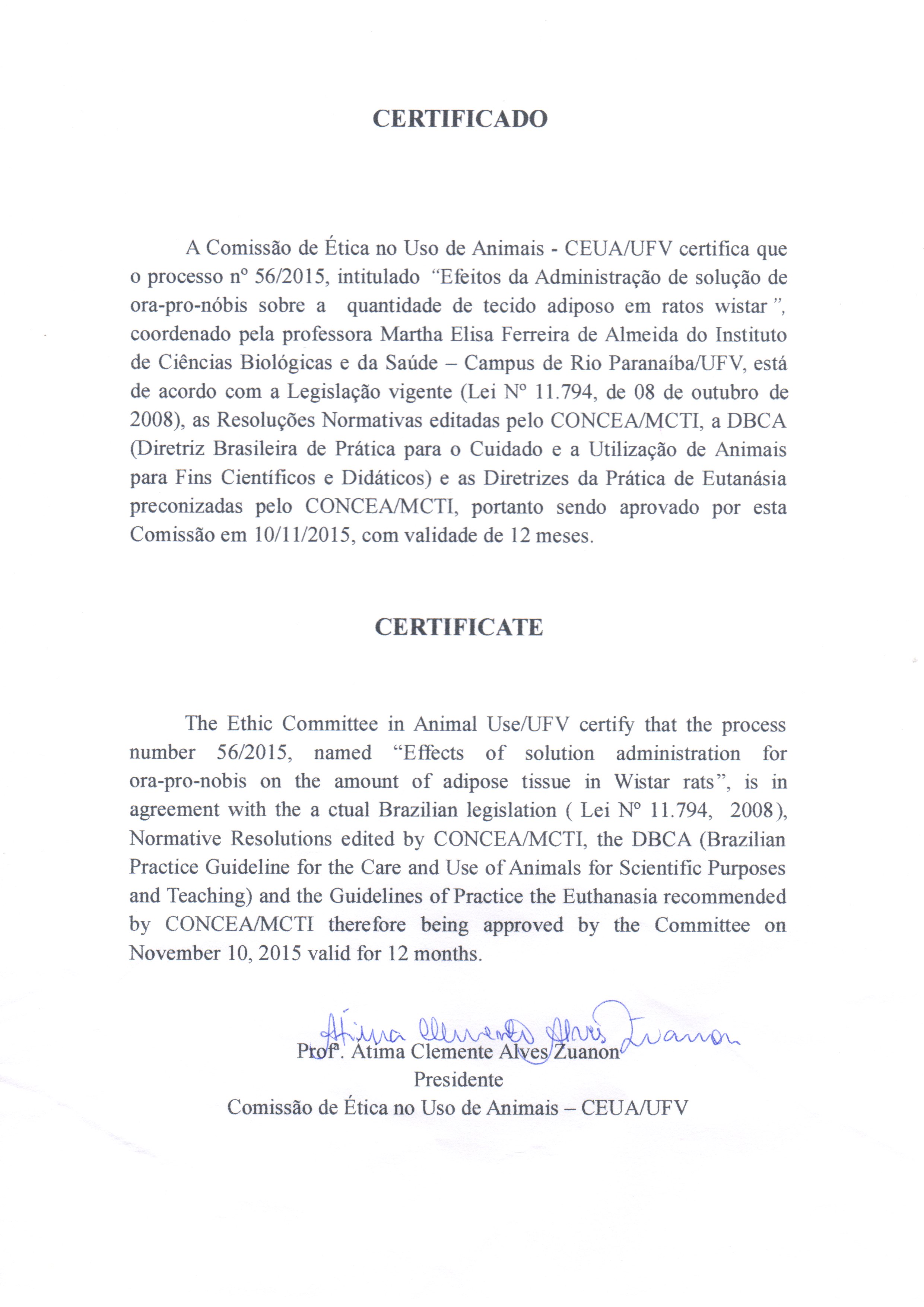 EFEITO ANTIOBESOGÊNICO DA PERESKIA GRANDIFOLIA EM RATOS ALIMENTADOS COM DIETA DE CAFETERIA